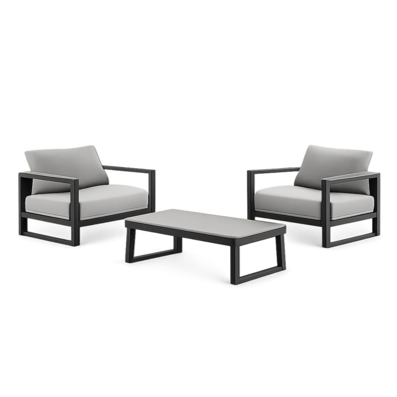 Ensemble de Mobilier Extérieur 2 Fauteuils 1 Table Aluminium